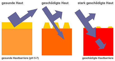 Die gesunde Haut ist eine natürliche Barriere, die aber durch innere, z. B. Krankheiten und Medikamente, sowie äußere Faktoren, z. B. Umweltfaktoren und Arbeitsstoffe negativ beeinflusst werden kann. Wenn die Haut sich nicht ausreichend regenerieren kann (zu starke Schädigung oder zu wenig Zeit zur Regeneration), entstehen Hautschäden, die auch vermehrt Umweltfaktoren und Arbeitsstoffe durch die Haut eindringen lassen.